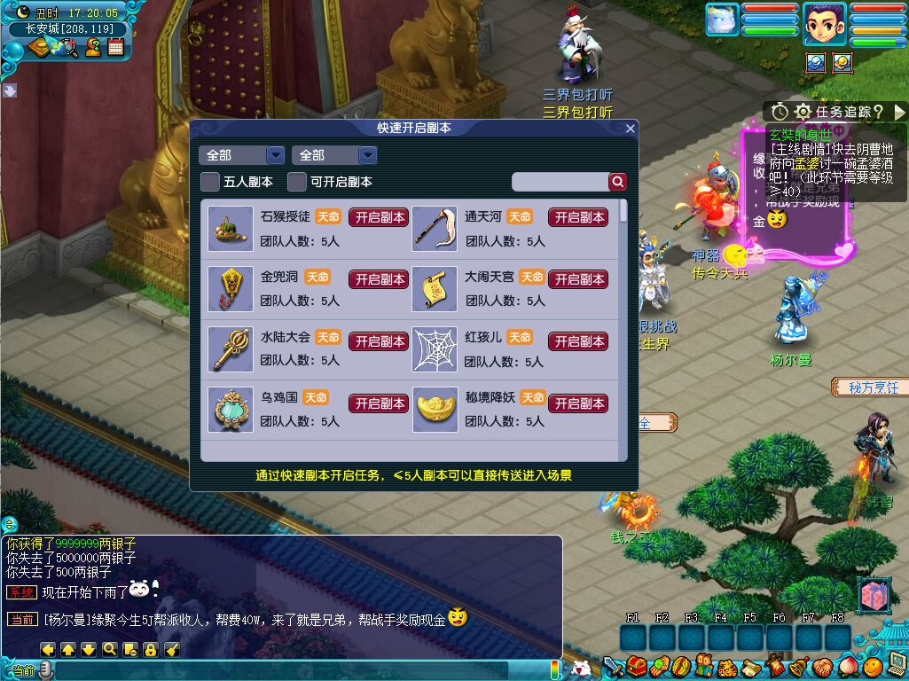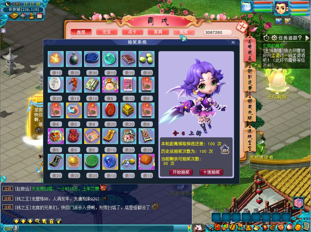 #C/ 99) #G/添加重写蟠桃盛会活动,奖励幸运值,NPC随机刷新长安双附近!